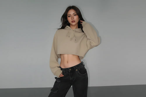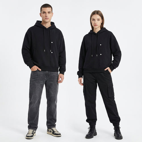 Boxy Button Placket Hoodie